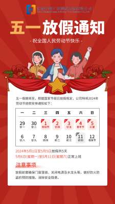 根據(jù)國家法定節(jié)假日安排及公司實(shí)際情況,現(xiàn)將2023年五一勞動節(jié)放假事宜通知如下:一、放假時間本次放假時間為2023年4月29日(星期六)至5月3日(星期三)放假調(diào)休,共5天。4月23日(星期日)、5月6日(星期六)上班。請各位員工提前做好工作安排,確保放假期間各項工作能夠順利交接。